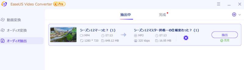 ・オーディオ抽出 → 動画の音楽のみを抽出できる
