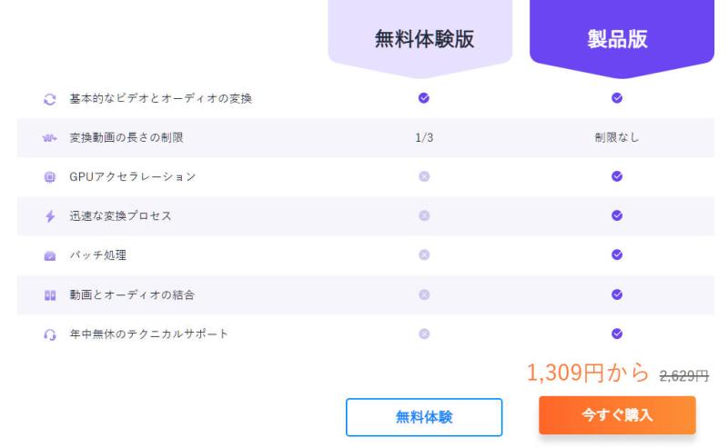 基本的なビデオ・オーディオの変換は無償版・有償版どちらでも可能です。大きな違いは変換動画の長さ制限でしょうか。無料体験版でも普通に使えるので、まずは無料体験版で試してみるのが良いでしょう。