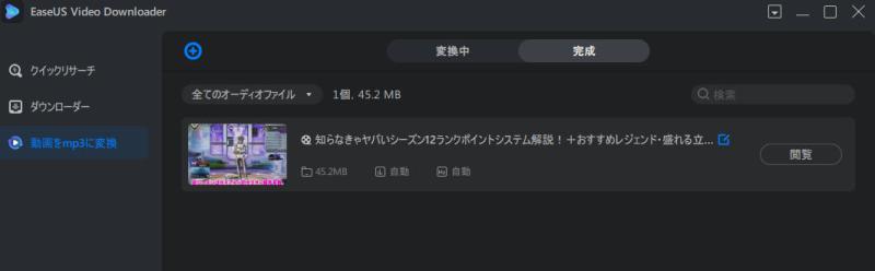 試しにダウンロードした動画をmp3変換してみたが、1分とかからずすぐに終わった。