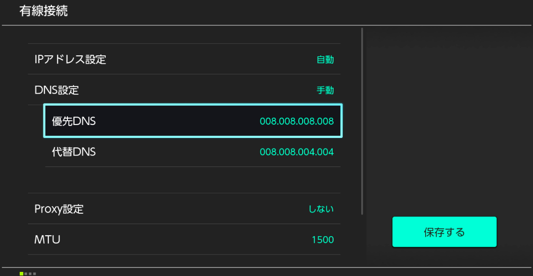 さっき選んだ接続テストの上にある有線接続→DNS設定→手動